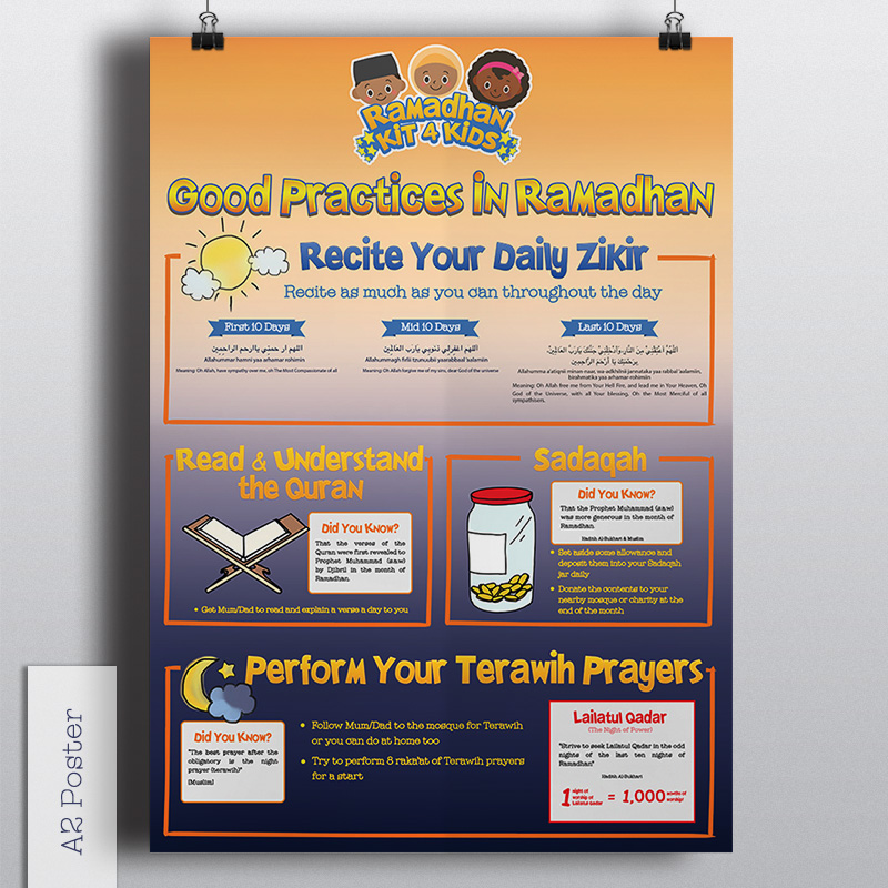 A colourful & informative poster on good practices that we are encouraged to do in Ramadhan.